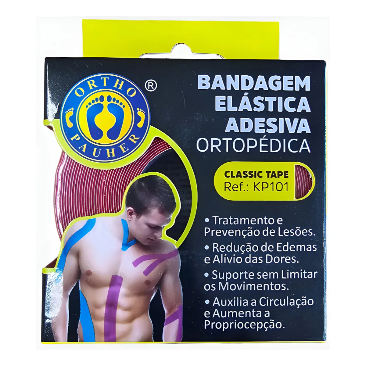 A Bandagem Elástica Kinesio Pauher Classic Tape Cor Preto é uma fita elástica adesiva indicada para suporte muscular e articular durante atividades físicas, terapias e recuperação. Sua textura se adapta à pele e não limita os movimentos, proporcionando conforto e estabilidade.