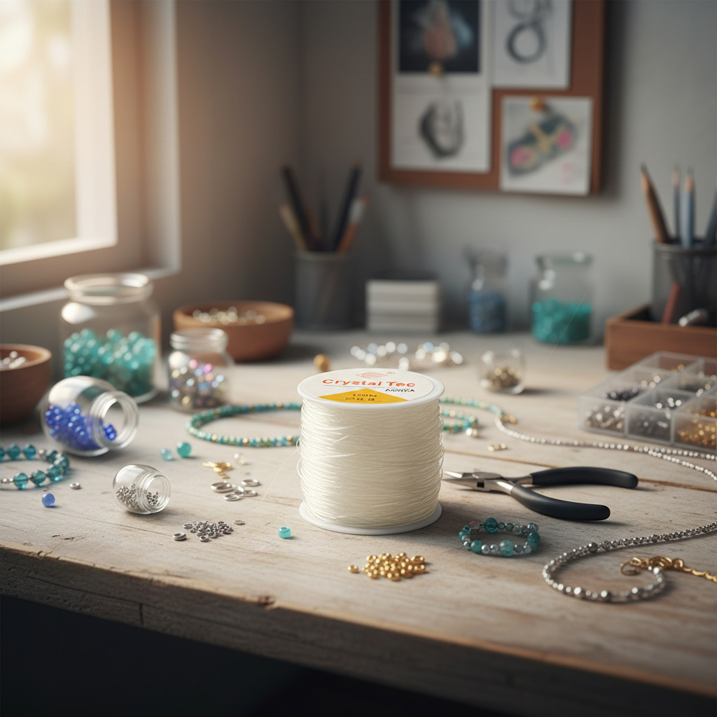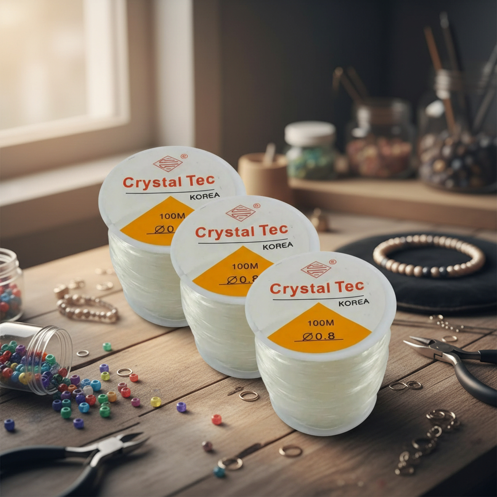 Fio de silicone 0,8mm utilizado para montagem de pulseiras e bijuterias.