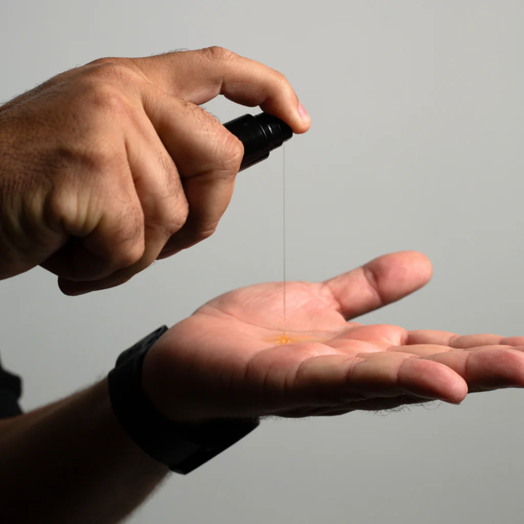 - Aplique uma pequena quantidade do Óleo de Barba WOOD na palma das mãos, esfregue uma mão na outra, espalhe o óleo entre os dedos e, então, aplique sobre a barba limpa e seca, desde a raiz dos fios até as pontas, massageando com os dedos.