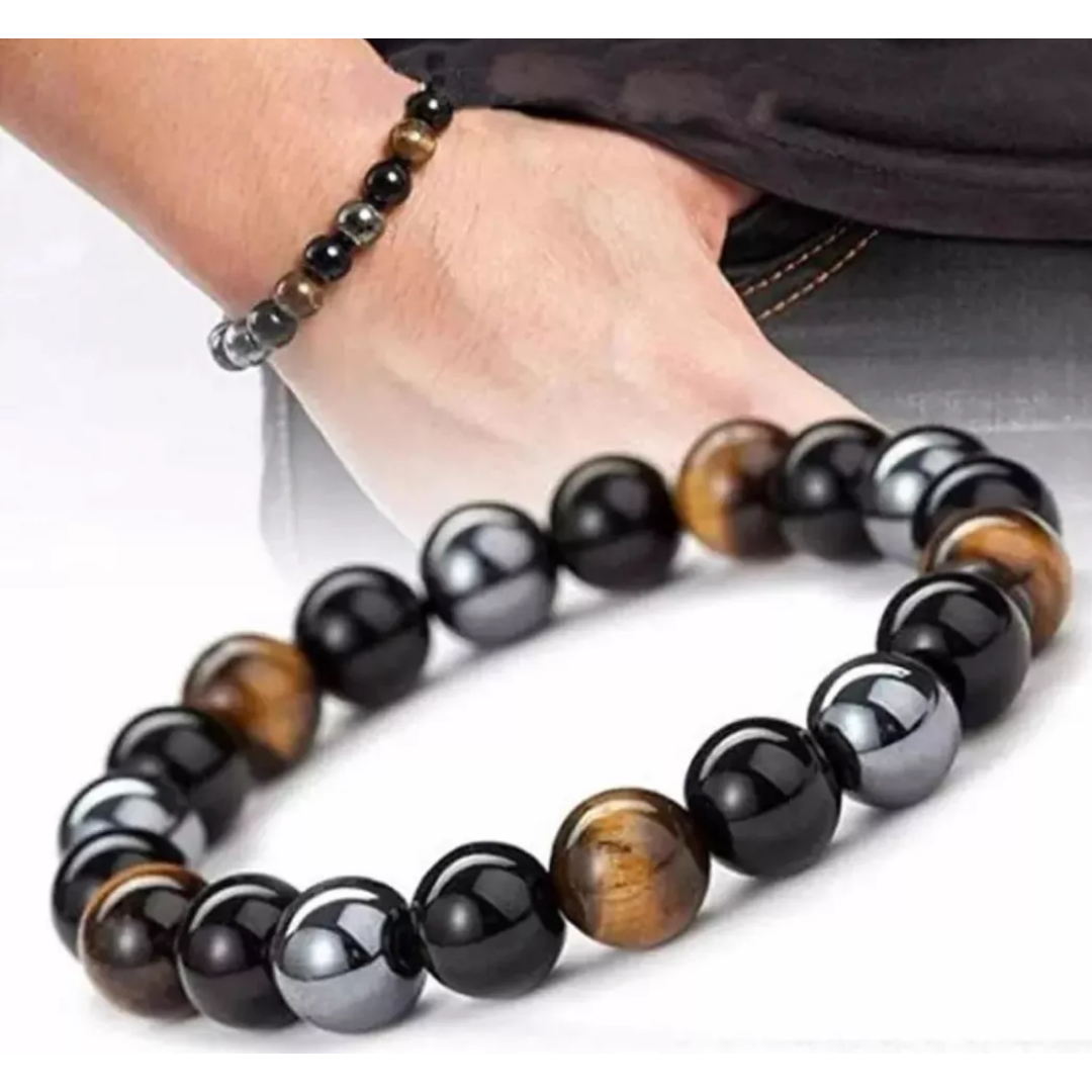 Que incrível combinação poderosa de três pedras com energias únicas "Três Pedras, Uma Pulseira, Poder Triplicado! Conheça nossa nova Pulseira com Olho de Tigre, Ônix e Hematita – uma combinação perfeita de proteção, equilíbrio e força! Cada pedra traz uma energia única para transformar seu dia a dia. Propriedades das Pedras: • Olho de Tigre: Estimula a coragem, aumenta a confiança e atrai prosperidade. • Ônix: Protege contra energias negativas, promove clareza mental e força interior. • Hematita: Auxilia na concentração, equilibra a mente e atrai vitalidade. Sinta-se protegido, energizado e pronto para conquistar seus objetivos com essa pulseira única. Adquira a sua agora e tenha o poder das três pedras sempre com você! • Pedra Olho de Tigre 8mm • Pedra Hematita 8mm • Pedra Onix 8mm • Fio de Silicone Conservação; Para melhor conservação das suas peças, evite contato constante com água, produtos químicos, hidratantes, perfumes, etc…